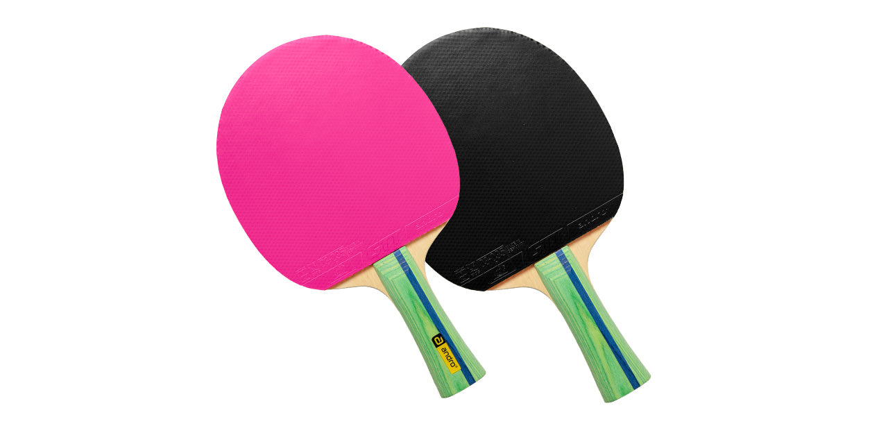Forehand rubber options: andro rubber GTT45 1.8 mm - blue, red, pink
